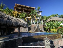 Bungalovy na terasách na útesech nad mořem.